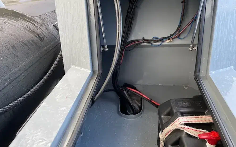 pompe de cale, direction hydraulique, réservoir 50l, combiné gps sondeur Hélix 9 sonde tableau arrière
