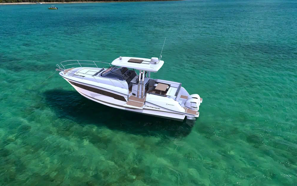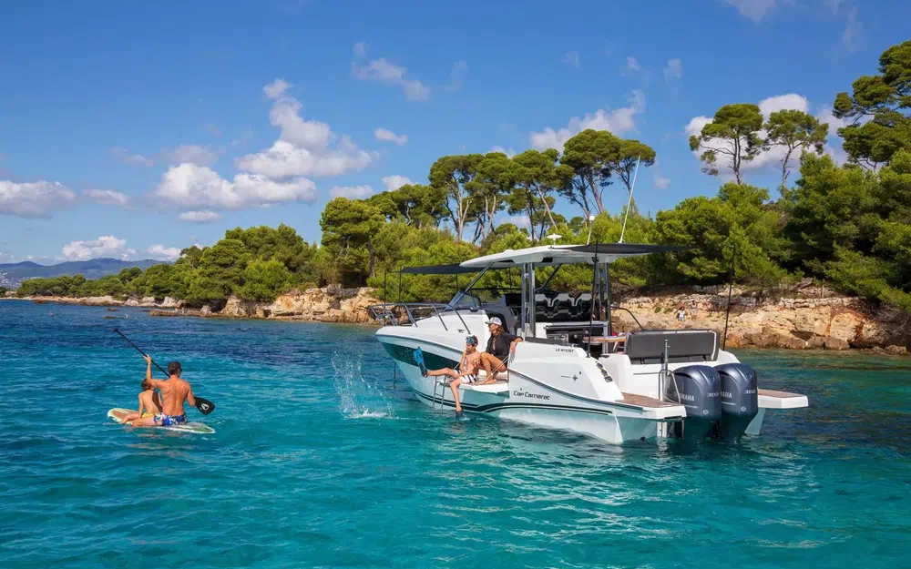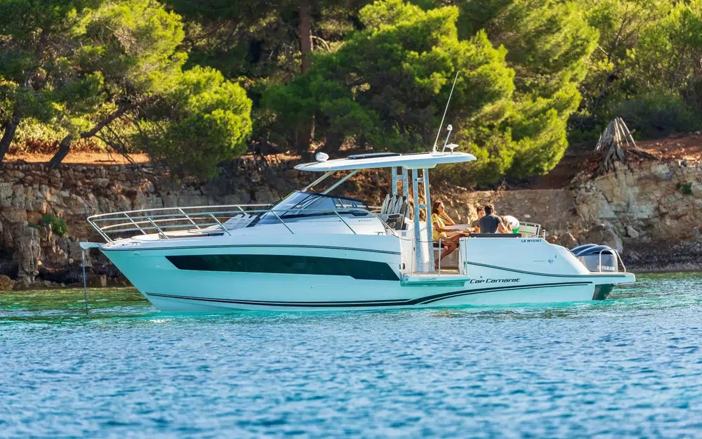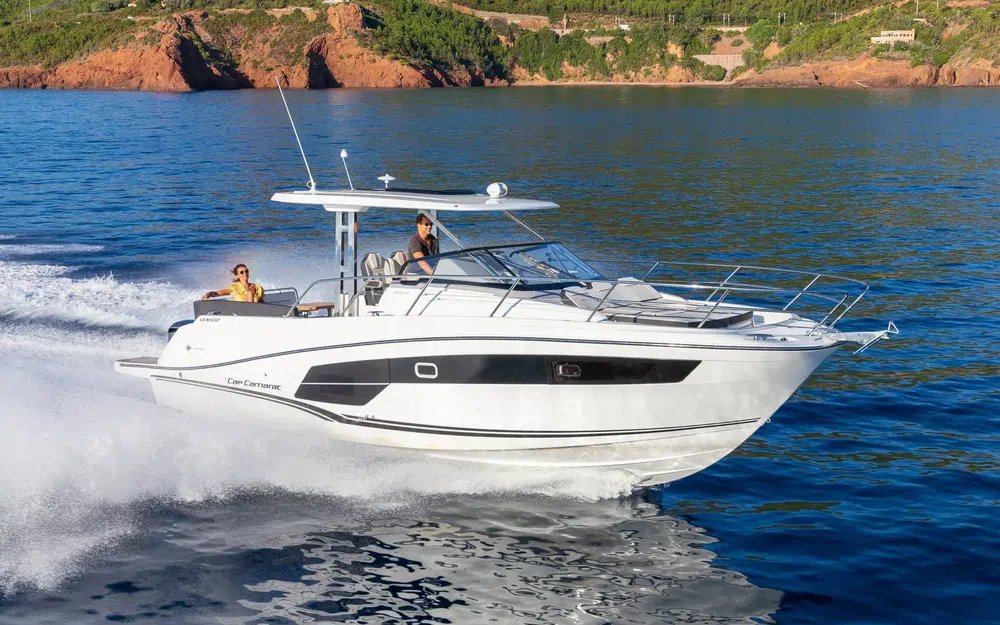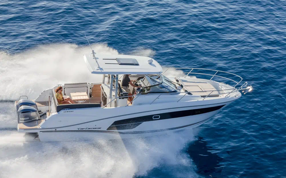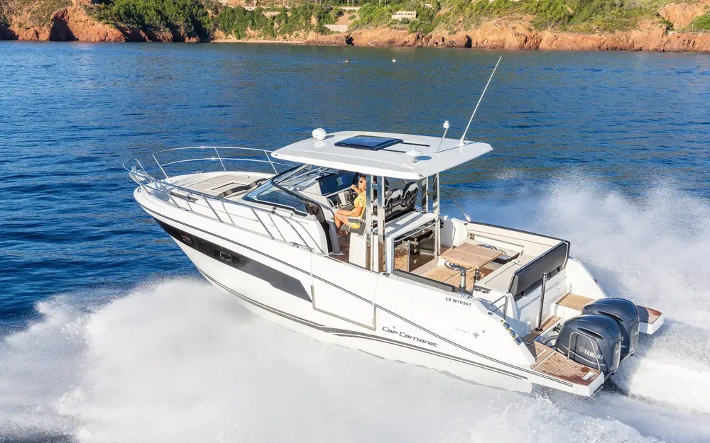 Le Cap Camarat 10.5 WA se décline désormais en une ligne « pare-brise intégral ». Ce pare-brise haut et enveloppant dessine très nettement une zone de pilotage encore mieux abritée des éléments. Bien protégés, le pilote et ses copilotes pourront toutefois sentir le vent du large grâce à un système de ventilation situé au sommet de la vitre centrale. Le complément de confort offert par le pare-brise intégral permet d’être encore plus en confiance face aux éléments, de naviguer sereinement tout en profitant pleinement des performances du bateau. Avec cette nouvelle version, le style global du bateau a été repensé pour un look plus affirmé et un aspect plus sportif.