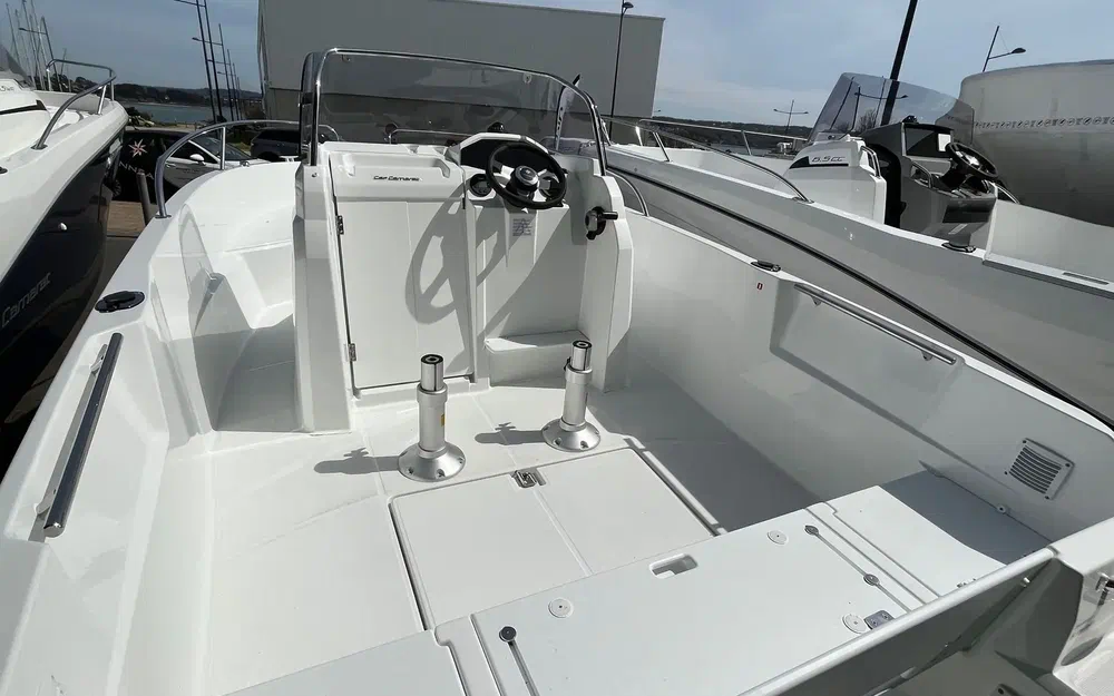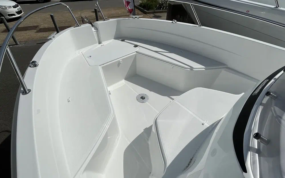 La carène en V évolutif lui apporte un comportement en mer sûr et idéal pour le ski nautique, la pêche ou la promenade. Le bateau affiche des performances élevées tout en restant économique à l’utilisation. La console adopte un look «Fishing» et une ergonomie de pilotage parfaite, directement inspirée des grands Cap Camarat. Grâce à son assise centrale coulissante, le cockpit arrière est spacieux et accueillant même lorsque le moteur est relevé.Entièrement dédié au farniente, le cockpit avant reçoit la famille en sécurité et se transforme en un grand bain de soleil. Chaque instant passé à bord n’est que plaisir.