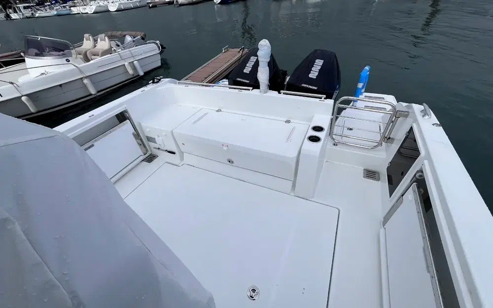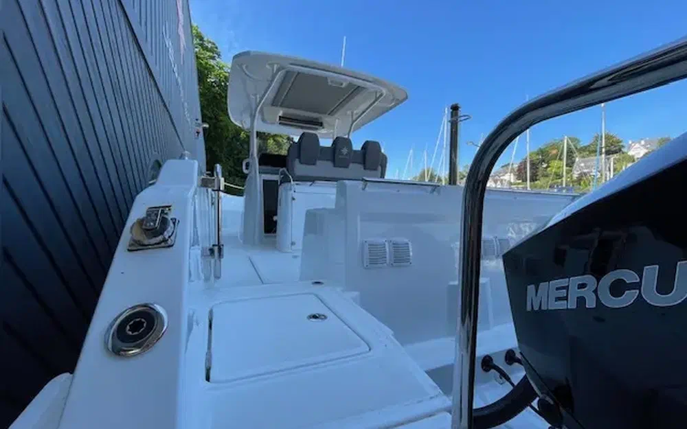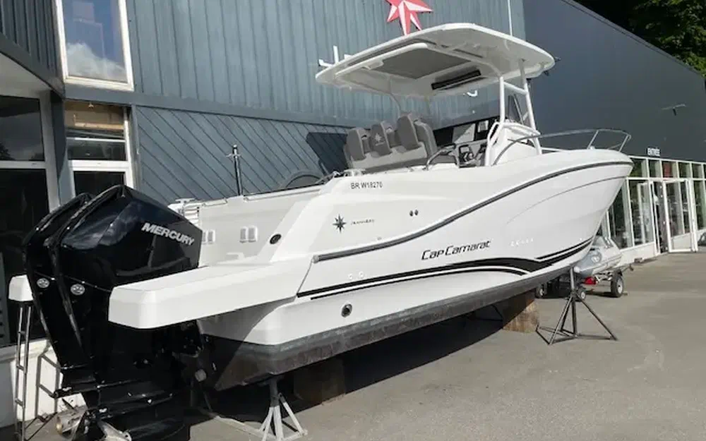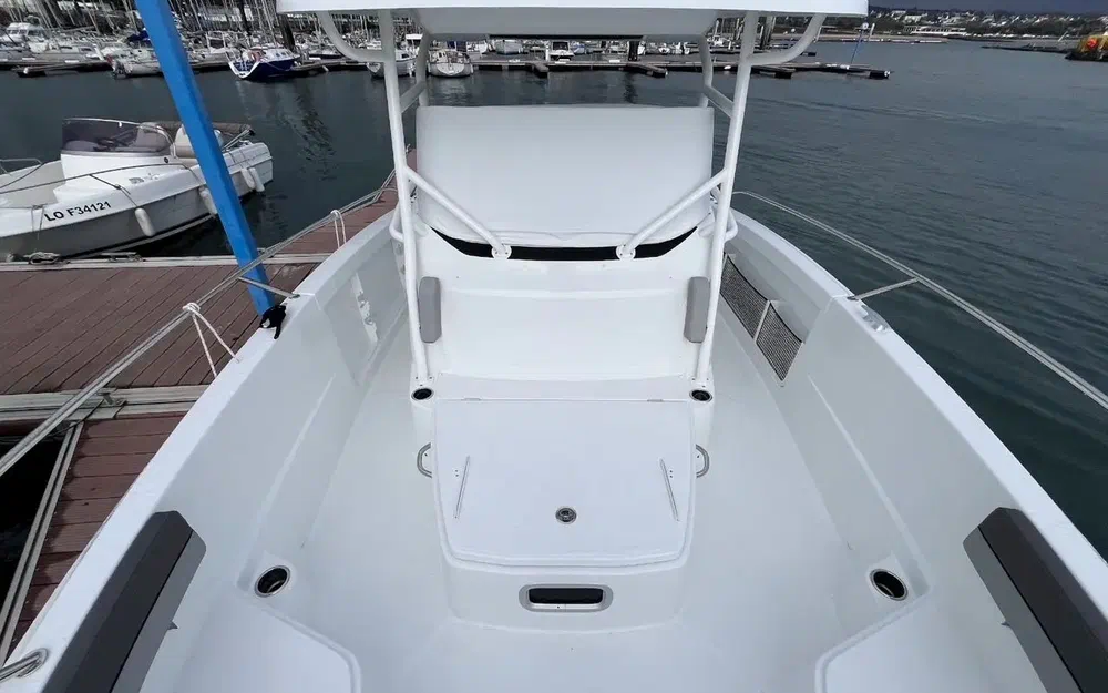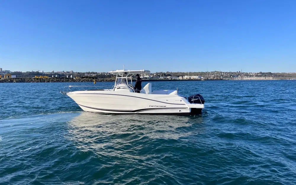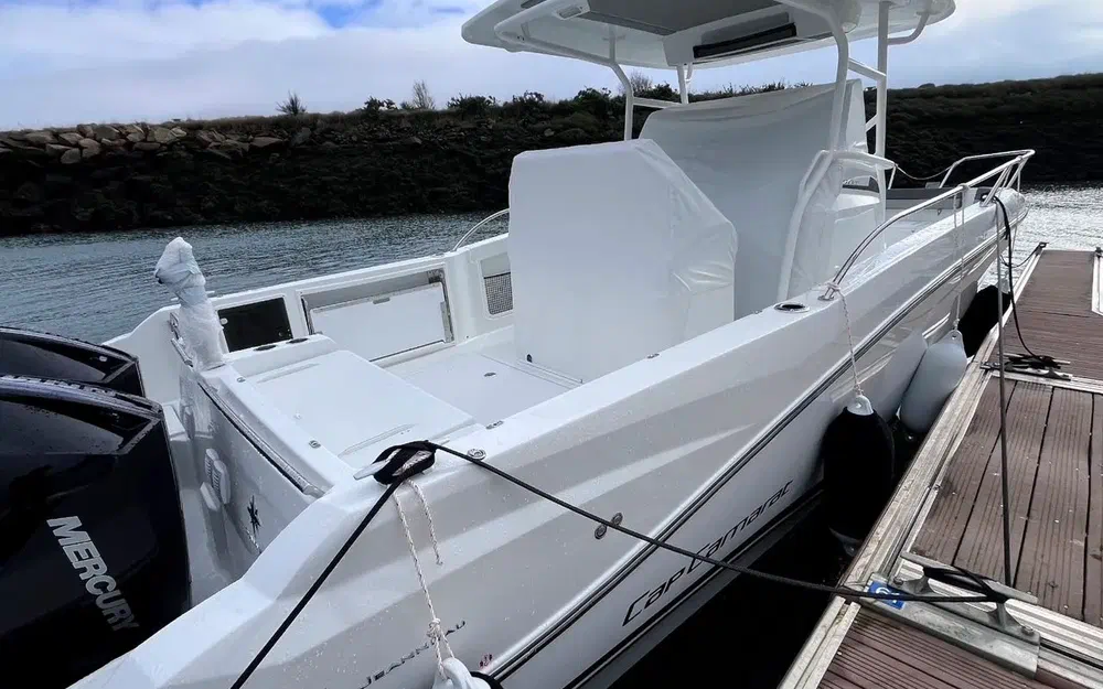 Le CAP CAMARAT 9.0 CENTER CONSOLE devient ainsi le modèle amiral de la gamme CC, et permet d’embarquer à son bord jusqu’à 11 personnes. Il mêle avec ingéniosité et caractère la performance d’un Fishing (carène Mickaël Peters, motorisation mono et bi-moteur jusqu’à 2 x 250 CV), le confort d’un Fishing familial, et le design d’un modèle haut-de-gamme.