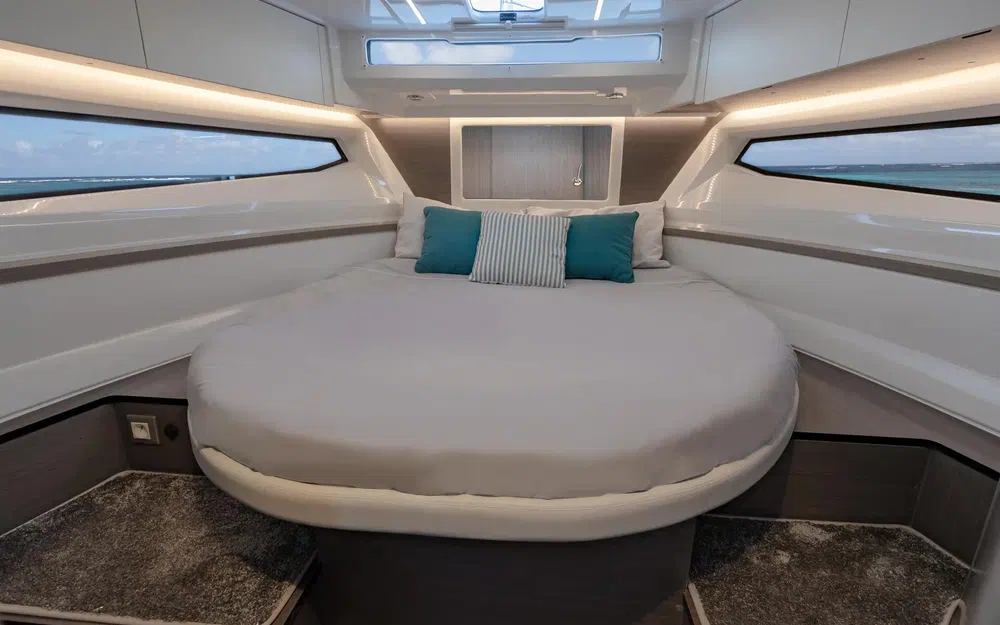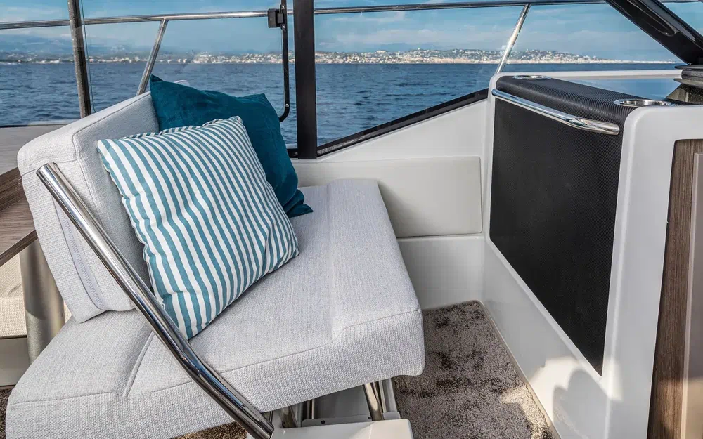 Le cockpit bénéficie d’un salon en L, de dossiers allongés et d’accoudoirs pouvant accueillir des portes-gobelets. A l’intérieur comme à l’extérieur, le système de dossier peut pivoter pour adapter l’assise à ses envies.