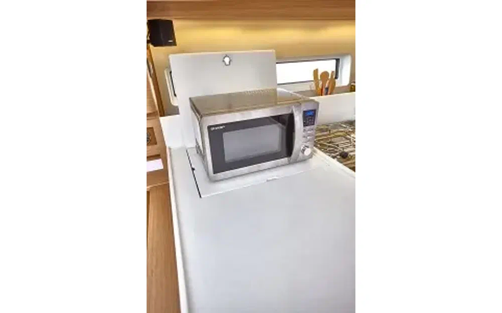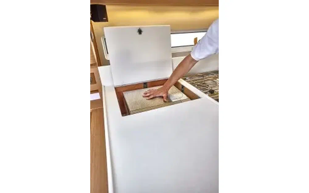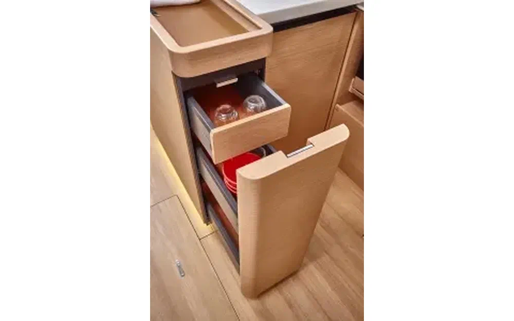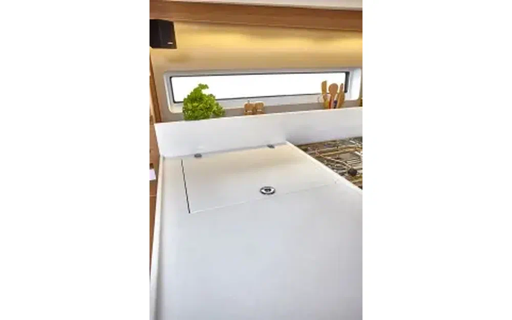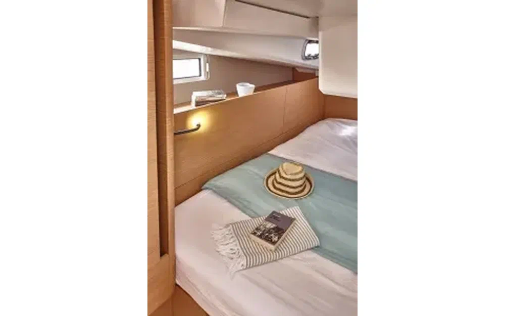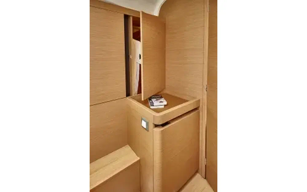 A l’intérieur, les lignes sont simples, la perception des volumes est agréable et facile. Ce voilier révèle une structure homogène, dédiée à l’aspect naviguant et aux joies de la vie à bord.