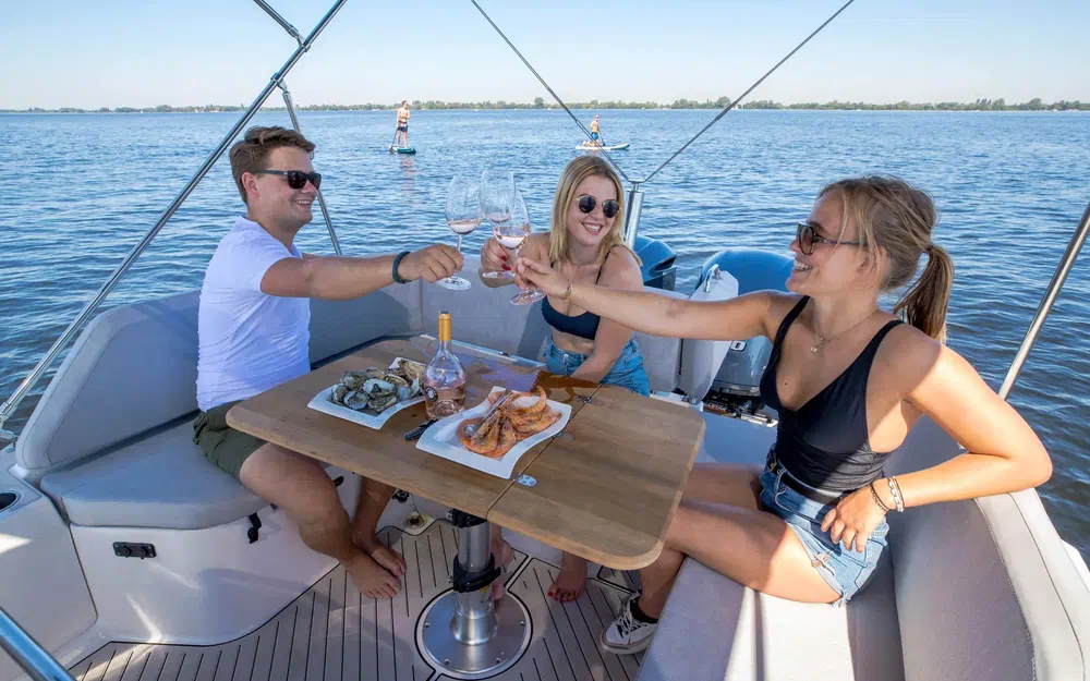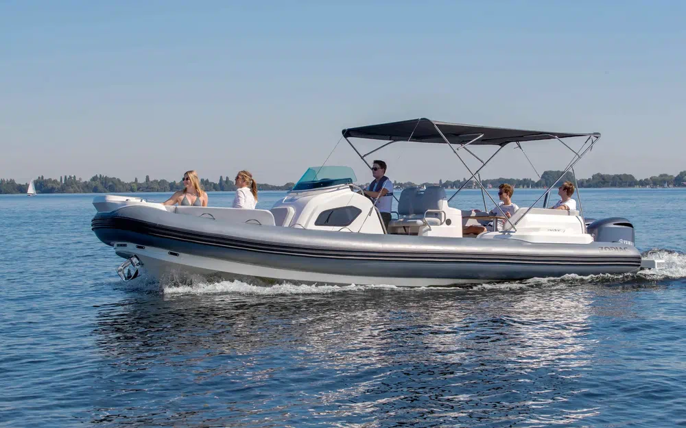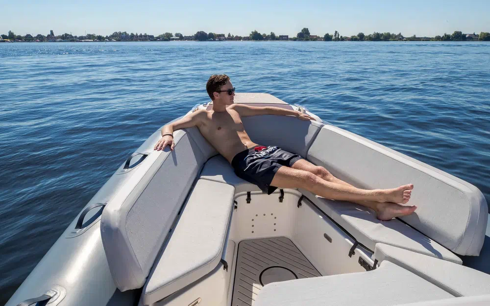 Le navire amiral Zodiac avec sa taille XXL, il a été conçu comme un studio haut de gamme. Pas envie de rentrer au port le soir après une journée riche en émotions? On vous comprend, heureusement, on a pensé à la couchette optionnelle dans la cabine ! Un espace de détente infini pour des journées inoubliables… Double carré avant et arrière, transformables en bain de soleil, jusqu’à 14 places assises en équipement standard. Il dispose d'une cuisine intégrée avec évier, d'une console intégrant une cabine habitable avec toilettes (espace couchette en option), d'un bolster triple positions pouvant accueillir jusqu’à deux adultes + un enfant, et des plateformes d’accès arrière à la mer et un davier plongeoir à l’avant.